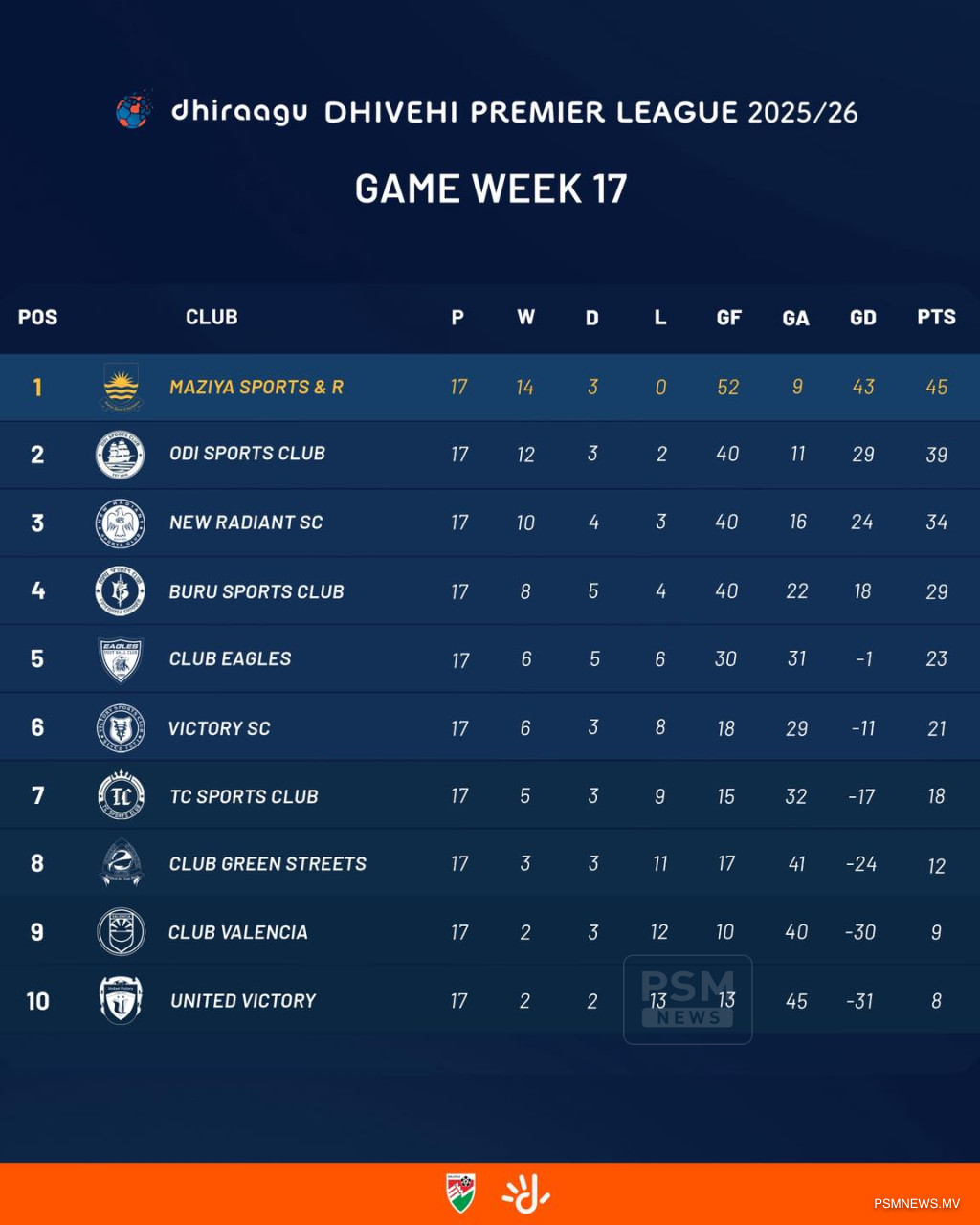 މިހާތަނަށް ތާވަލުގެ މަގާމުތައް ކަށަވަރުވެފައިވަނީ ޕްރެޒިޑެންޓްސް ކަޕުގެ ގްރޫޕް ސްޓޭޖުން ޖާގަ ލިބިފައިވާ ލީގު ޗެމްޕިއަން މާޒިޔާ، ދެވަނަ ހޯދި އޮޑި ސްޕޯޓްސް ކްލަބް، ތިންވަނައިގައި އޮތް ނިއުރޭޑިއަންޓް ސްޕޯޓްސް ކުލަބު އަދި ހަތަރުވަނައިގައި އޮތް ބުރު ސްޕޯޓްސް ކުލަބުގެ އިތުރުން ޕްލޭއޮފްގެ ފުރަތަމަ މެޗުގައި ކުޅެންޖެހޭ، ލީގު ތާވަލުގެ އަށްވަނައިގައި އޮތް ކްލަބް ގްރީން ސްޓްރީޓްސްއެވެ.
