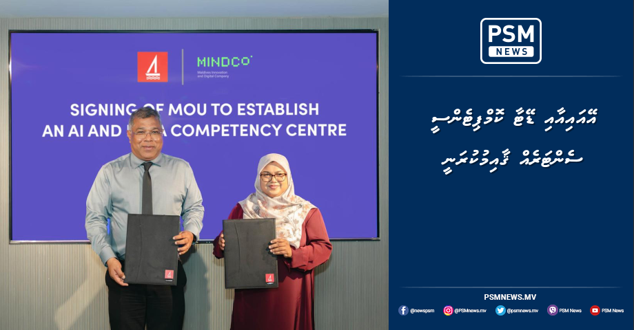 މޯލްޑިވްސް އިނޮވޭޝަން އެންޑް ޑިޖިޓަލް ކޮމްޕެނީ، މައިންޑްކޯއާއި ބޭންކް އޮފް މޯލްޑިވްސް ގުޅިގެން އޭއައި އަދި ޑޭޓާ ކޮމްޕިޓެންސީ ސެންޓަރެއް ޤާއިމުކުރުމަށް ފަހުމުނާމާއެއްގައި ސޮއިކޮށްފިއެވެ.