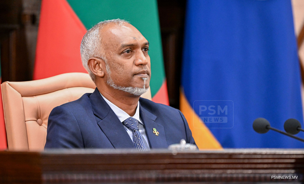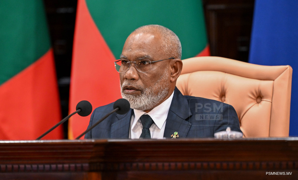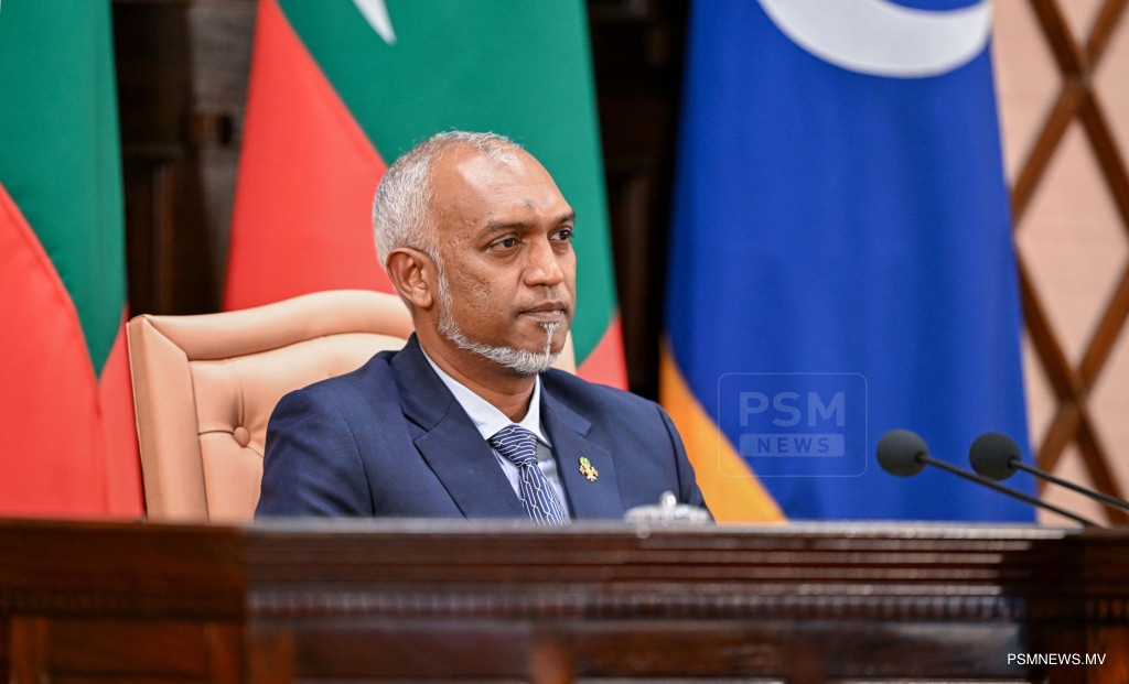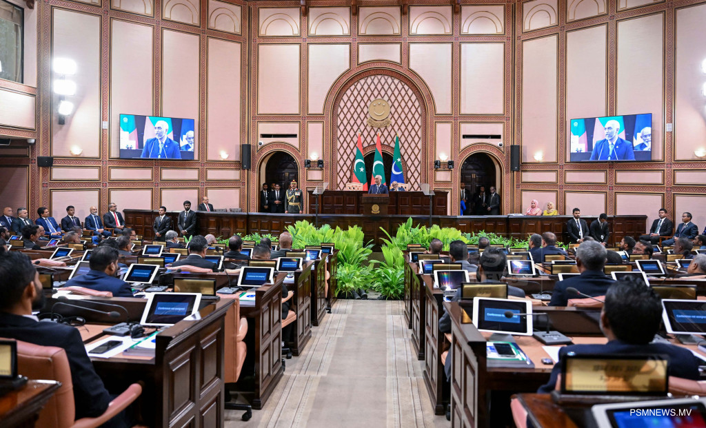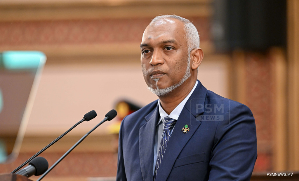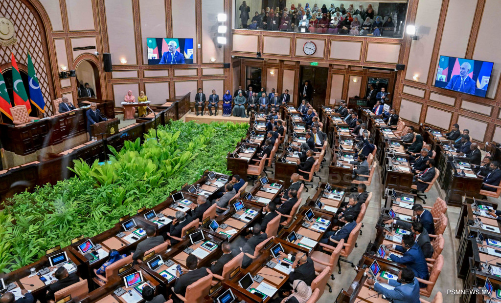 ރައްޔިތުންގެ މަޖިލީސް ހުޅުވުމަށް ބޭއްވި ޖަލްސާގެ ޖަލްސާގައި ރައީސުލްޖުމްހޫރިއްޔާ ޑރ. މުޙައްމަދު މުއިއްޒު / ފޮޓޯ ރައީސް އޮފީސް