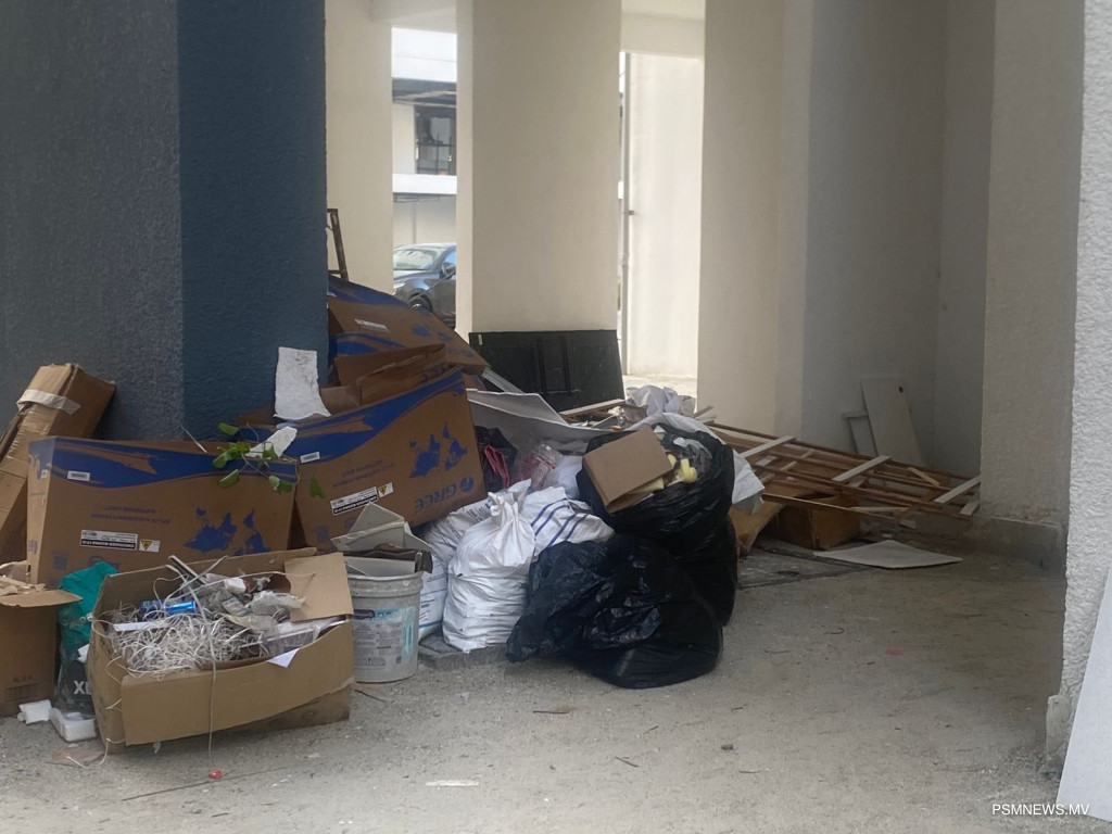 ފަހި ފްލެޓު ލިބުނު މީހުން އެ ތަންތަނަށް ބަދަލުވުމަށް ގެންދާ ސާމާނާއި އެ ތަންތަނުގެ އިންޓީިރިއާ މަސައްކަތުގައި އުފެދޭ ކުނިން ޓަވަރުތަކުގެ ތިރި އޮތީ ވަރަށް ބޮޑަށް ހަޑިކޮށްފައެވެ. އެގޮތުން ފަރުނީޗަރާއި، ތެލި ތައްޓާއި، އޭސީއާއި، ޓީވީ ފަދަ އެކި ސާމާނުގެ ފޮށިތައް ފްލެޓުތަކުގެ ކޮރިޑޯއާއި، ދޮރުމައްޗާއި، އެކި ތަންތަނަށް ޖަމާކޮށްފައި ހުއްޓެވެ. ބައެއް ޓަވަރުތަކުގެ ލިފްޓް ކައިރީވެސް ބޮޑެތި ކުނި ފުނިތައް ޖަހާފައި ހުއްޓެވެ.