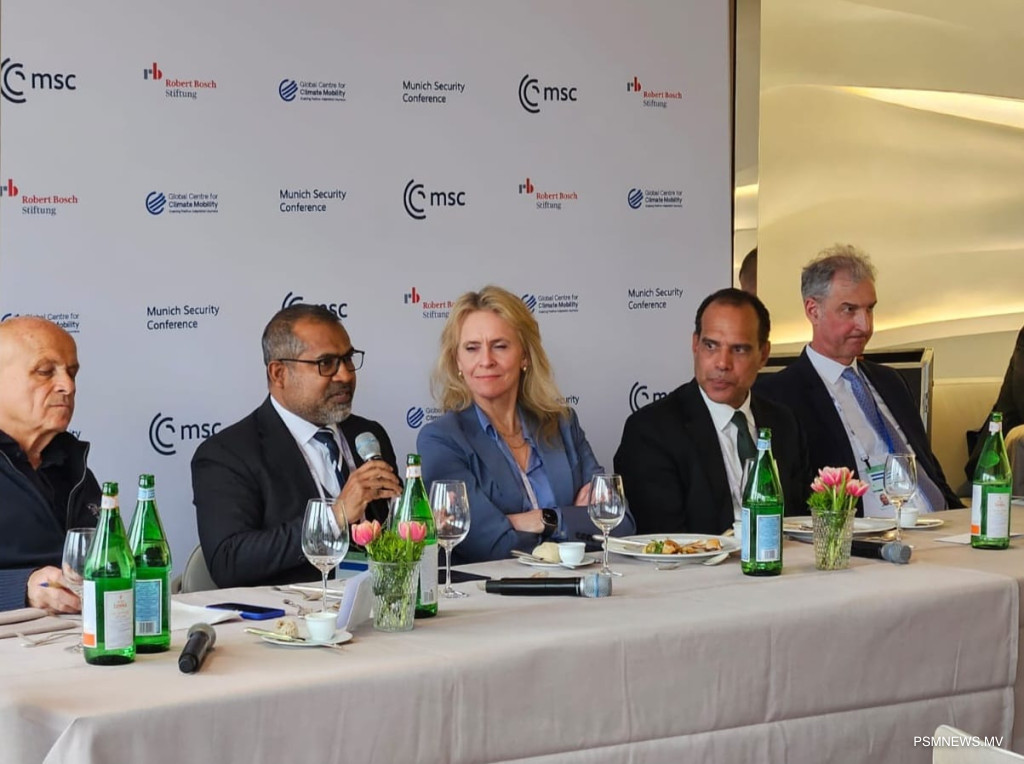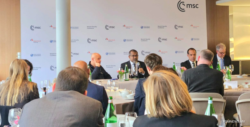 ވަޒީރު މިފަދައިން ވިދާޅުވީ، ޖަރުމަނުވިލާތުގެ މިއުނިކްގައި ކުރިއަށްދާ 62 ވަނަ މިއުނިކް ސެކިއުރިޓީ ކޮންފަރެންސްގެ ހަވާސާގައި ގްލޯބަލް ސެންޓަރ ފޮރ ކްލައިމެޓް މޮބިލިޓީ (ޖީ.ސީ.ސީ.އެމް) އާއި ރޮބަރޓް ބޯޝް ޝްޓިފްޓުންގ އިން ބޭއްވި ބައްދަލުވުމެއްގައި ވާހަކަފުޅުދައްކަވަމުންނެވެ.
