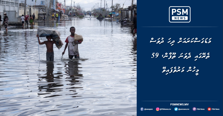 މަޑަގަސްކަރައަށް މިދިޔަ ހަފްތާގެ ތެރޭގައި އެރި ތޫފާން ގެޒަނީގައި 59 މީހުން މަރުވެފައިވާ ކަމަށް އެ ޤައުމުގެ ކާރިޘާތަކާ ބެހޭ އިދާރާއިން ބުނެފިއެވެ.