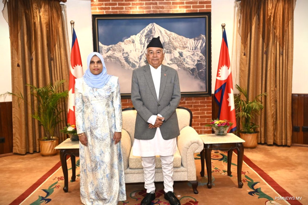ދިވެހިރާއްޖެއިން ނޭޕާލަށް ކަނޑައެޅުއްވި ނޮން-ރެޒިޑަންޓް ސަފީރު ޢާއިޝަތު އަޒީމާ، އެ ކަމަނާގެ ސަފީރުކަމުގެ ފަތްކޮޅު، ނޭޕާލުގެ ރައީސް ރައިޓް އޮނަރަބަލް ރާމްޗަންދުރަ ޕައުޑެލްއަށް މިއަދު އަރުވައިފިއެވެ.