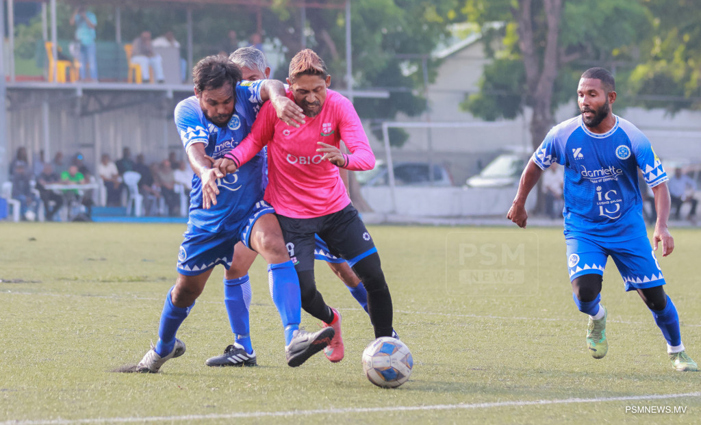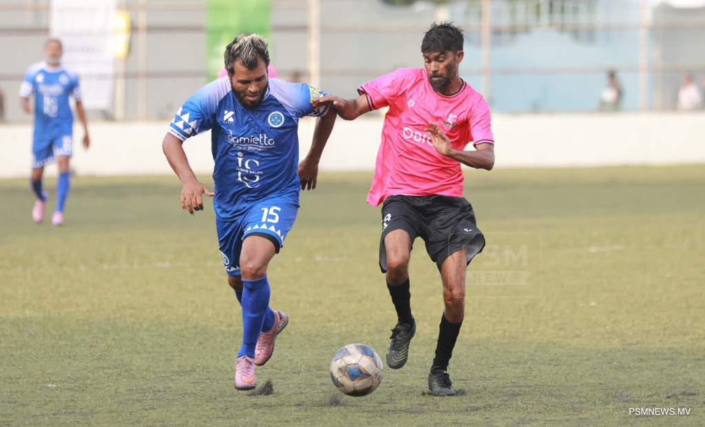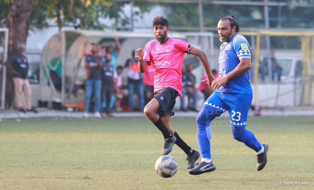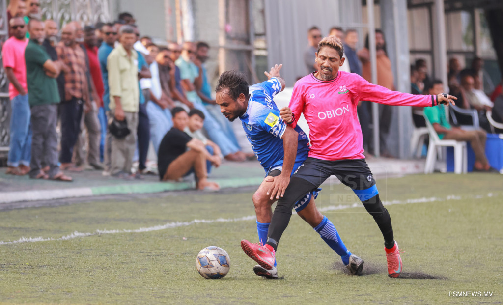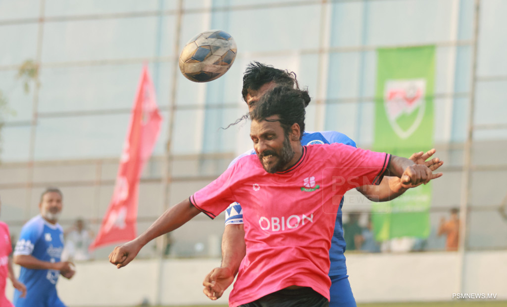 އެފްއޭއެމް ވެޓެރެންސް ކަޕް 2026- ނިއުރޭޑިއަންޓް ސްޕޯޓްސް ކުލަބު އަދި މުއިވެޔޮ ފްރެންޑްސް ކުލަބު ބައްދަލުކުރި މެޗްގެ ތެރެއިން. މި މެޗު ނިއު އިން ކާމިޔާބުކުރީ 1-0 ލަނޑުން / ފޮޓޯ: މުޙައްމަދު ވަޙީދު، ޕީއެސްއެމް ނިއުސް