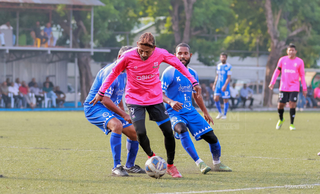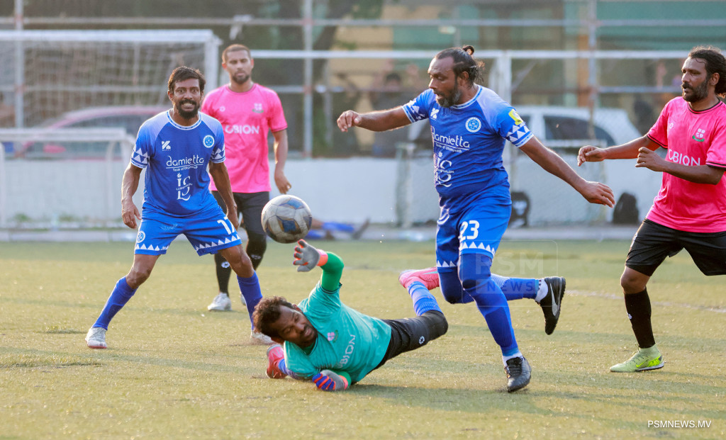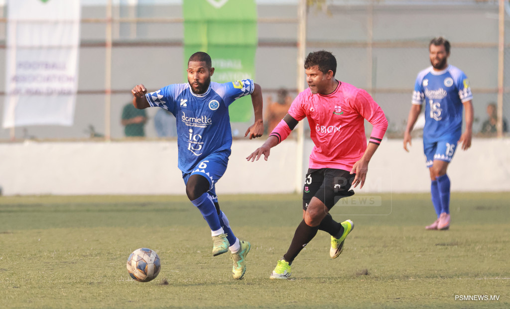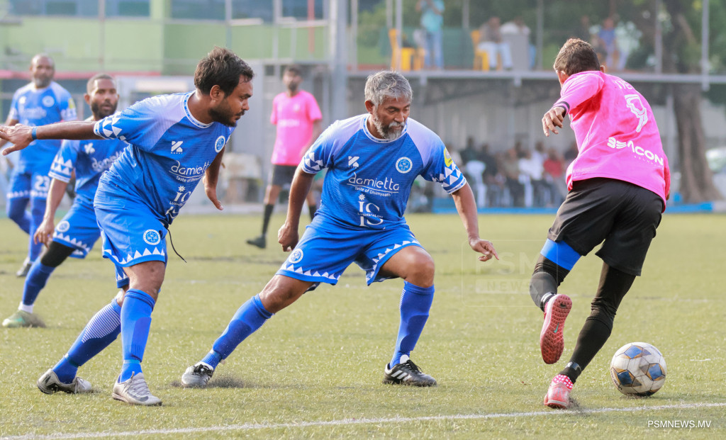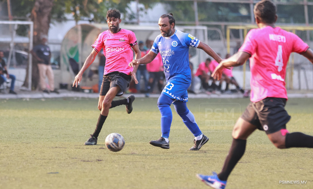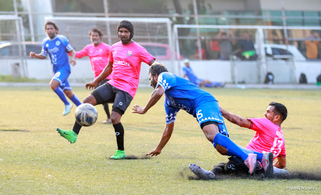 އެފްއޭއެމް ވެޓެރެންސް ކަޕް 2026- ނިއުރޭޑިއަންޓް ސްޕޯޓްސް ކުލަބު އަދި މުއިވެޔޮ ފްރެންޑްސް ކުލަބު ބައްދަލުކުރި މެޗްގެ ތެރެއިން. މި މެޗު ނިއު އިން ކާމިޔާބުކުރީ 1-0 ލަނޑުން / ފޮޓޯ: މުޙައްމަދު ވަޙީދު، ޕީއެސްއެމް ނިއުސް