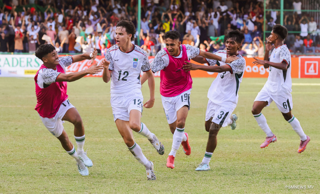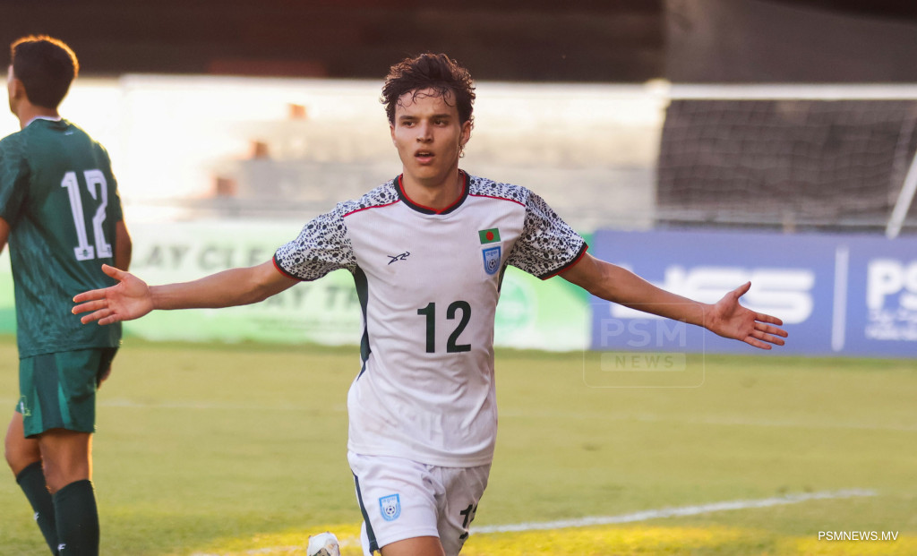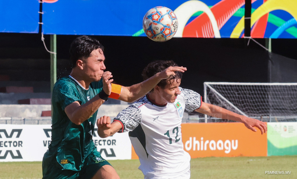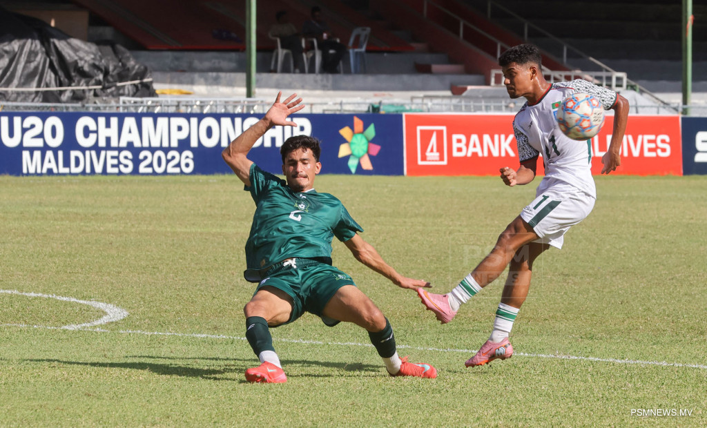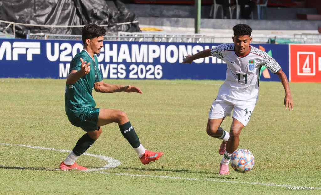 20 އަހަރުން ދަށުގެ ސާފް ޗެމްޕިއަންޝިޕްގައި ބަންގްލަދޭޝް އާއި ޕާކިސްތާން ބައްދަލުކުރި މެޗްގެ ތެރެއިން / ފޮޓޯ: މުޙައްމަދު ވަޙީދު، ޕީއެސްއެމް ނިއުސް
