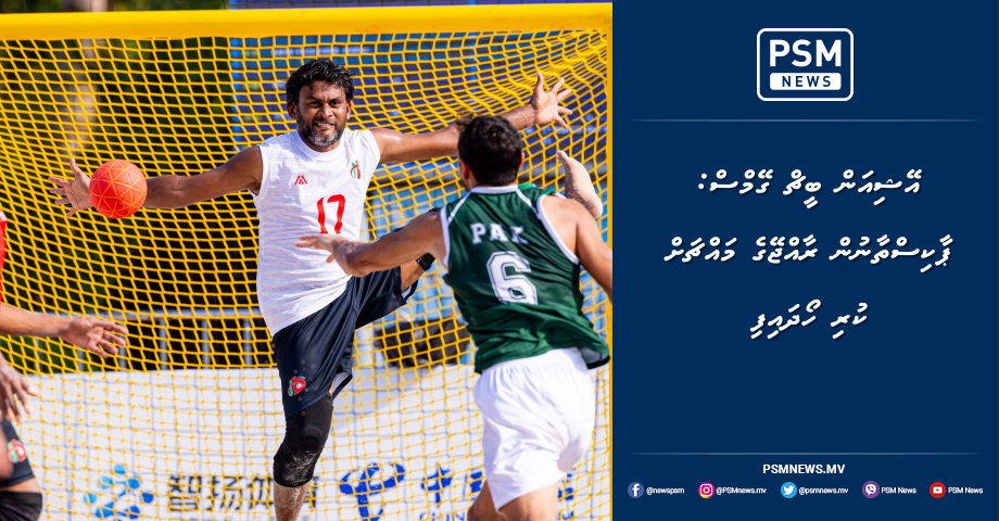 މިއަދު ރާއްޖޭން ނުކުތީ އޭޝިއާގެ އެންމެ ވަރުގަދަ ފަސް ޓީމުގެ ތެރޭގައިވެސް ހިމެނޭ، އެންމެފަހުގެ ކޮމަންވެލްތު ބީޗް ހޭންޑްބޯޅަ ގޭމްސް އަދި ދެކުނު އޭޝިއާގެވެސް ޗެމްޕިއަން ޕާކިސްތާނާ ދެކޮޅަށެވެ. އެމެޗު ޕާކިސްތާނުން ދެ ސެޓުން ކާމިޔާބުކުރި ނަމަވެސް، ރާއްޖެ ވަނީ ރަނގަޅު ވާދައެއް ކޮށްފައެވެ. ފުރަތަމަ ސެޓު 20-12 އިން ދިޔަ އިރު، ދެވަނަ ސެޓު ދިޔައީ 12-18 އިންނެވެ.