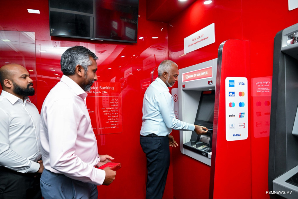 In Maradhoofeydhoo, the President inaugurated Bank of Maldives (BML)’s US Dollar ATM service. The foundation stone for the island’s Fitness and Recreation Centre, contracted to RDC, was also laid to coincide with the visit.