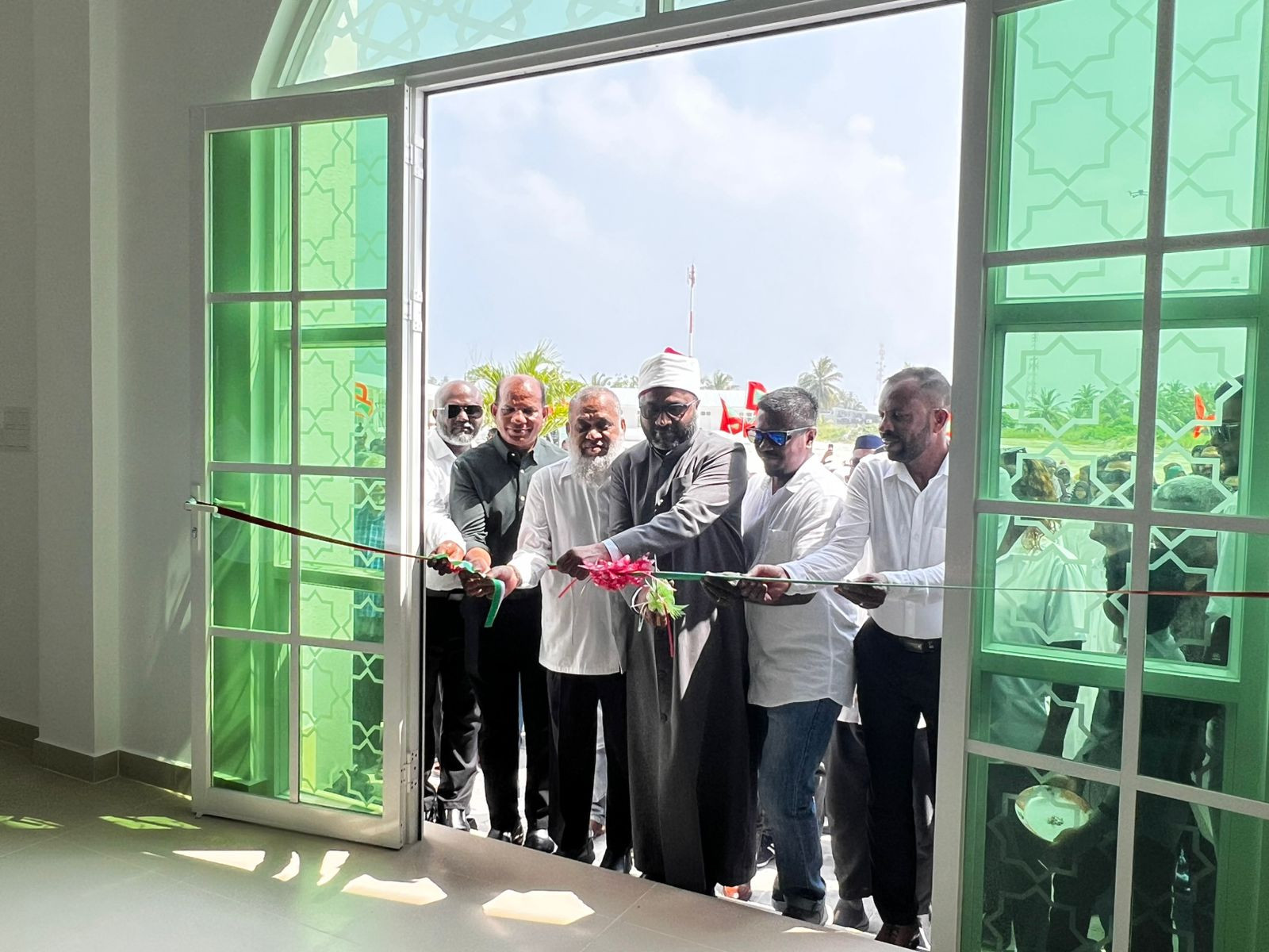 The Minister of Islamic Affairs, Dr Mohamed Shaheem Ali Saeed, on Friday inaugurated the Shaheed Umar Ahmed Islamic Centre, a major new institution in Dhidhdhoo, Haa Alifu Atoll. The opening, timed to coincide with Friday prayer, commemorates Shaheed Umar Ahmed, a native of the island who was martyred on 3 November 1988 while serving at the Islamic Centre in Malé during a mercenary assault on the Maldivian capital.
