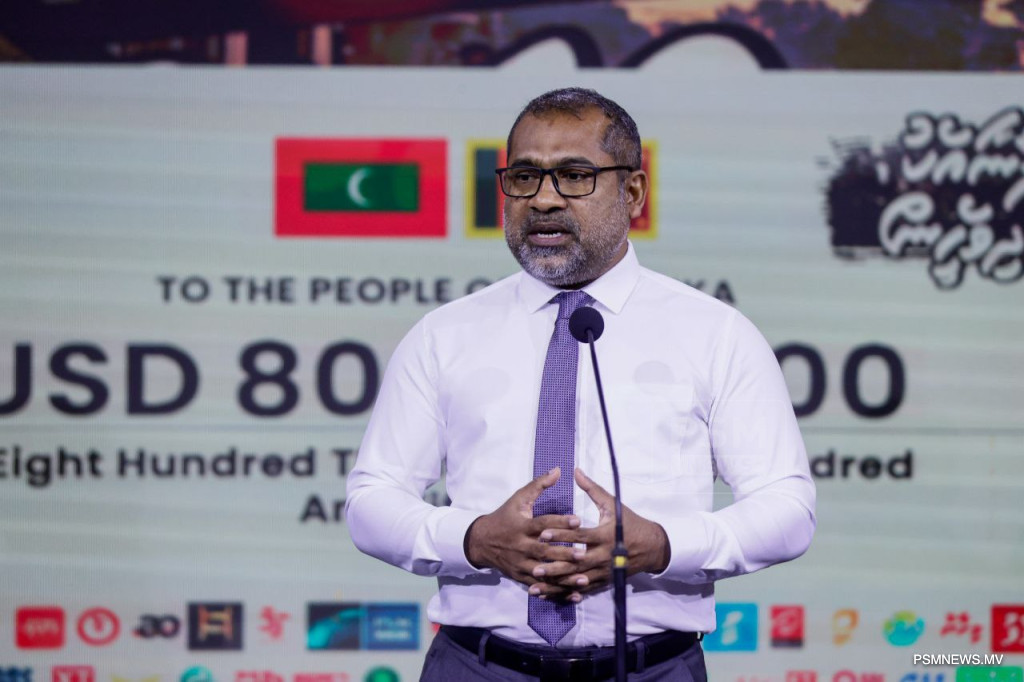 Speaking at the ceremony, Minister Khaleel highlighted that the telethon raised over USD 800,000 with contributions from across the Maldives, proving that the Maldivian people readily respond when neighbouring countries are in need.