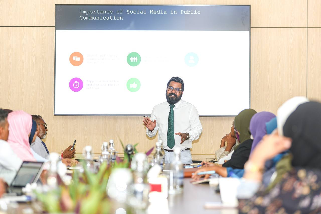 Speaking at the opening ceremony, Minister Adam Shareef Umar emphasised the importance of conveying the ministry’s work to the public and said the training will enhance employees’ contributions and facilitate service delivery, while PSM’s Managing Director, Ahmed Shakeeb highlighted that sharing ministry work publicly encourages employees and gathers public feedback. He assured that PSM is ready to provide technical assistance to other ministries if required.