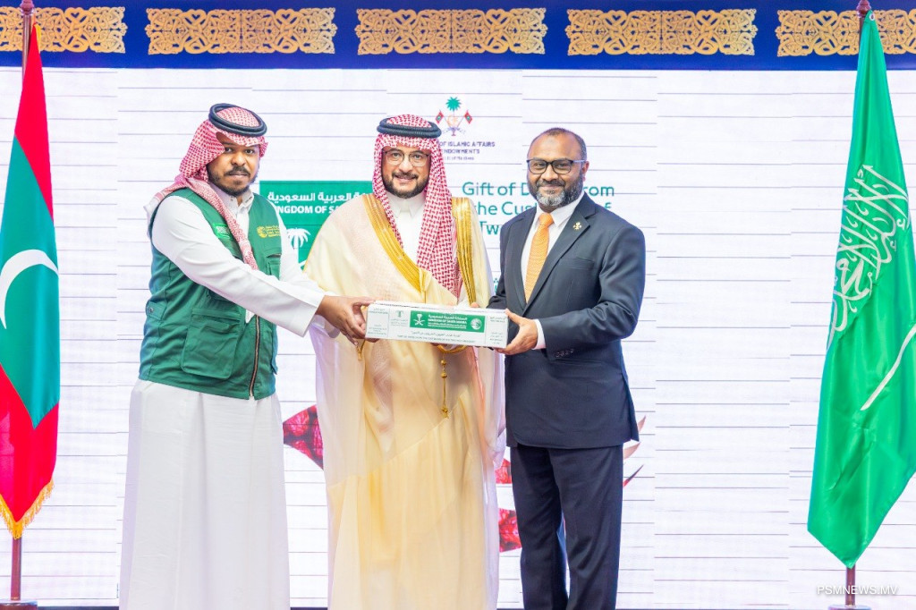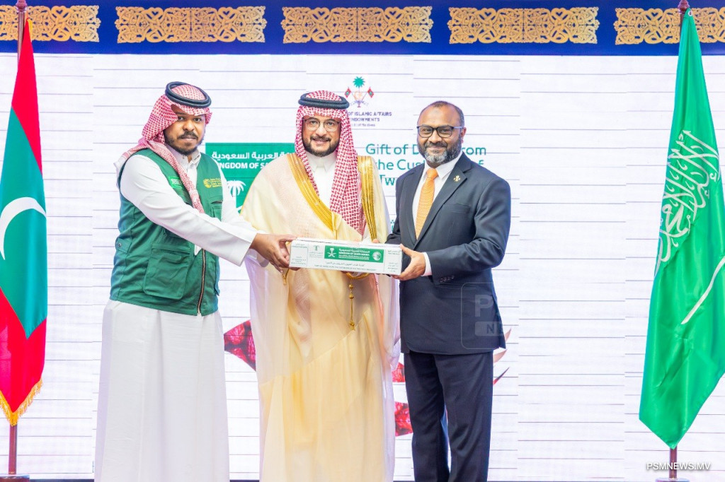 Saudi Arabia's Ambassador to the Maldives, Yahya Hassan Al-Qahtani, presented the donation on behalf of the Kingdom. The shipment was formally accepted by the Minister of Islamic Affairs and Endowments, Dr Mohamed Shaheem Ali Saeed, on behalf of the Maldivian government and its people.